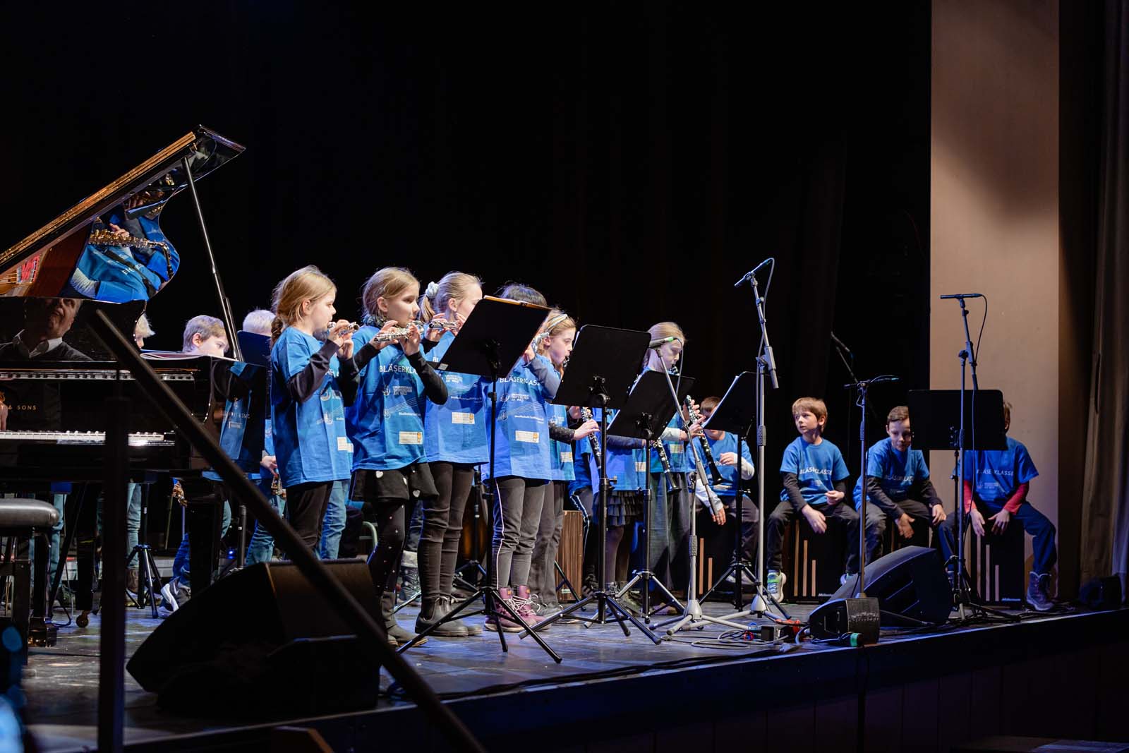 Nach dem sehr erfolgreichen Lehrerkonzert „Here we are“ am 5. Februar waren nun die Schülerinnen, Schüler, sowie zahlreiche Ensembles der Musikschule (Bläserklassen, Jugend Brass Band, Streicher AG) an der Reihe.